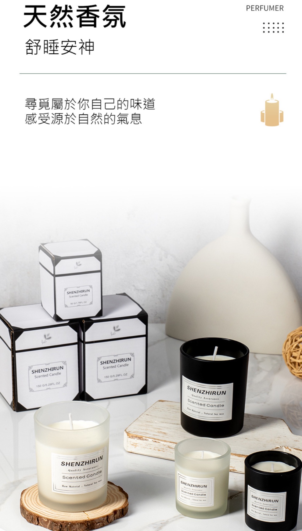 【產品資訊】 📍成分:植物大豆蠟 📍重量:200g/330g 📍尺寸:6X5cm (約燃燒12小時),8X7cm (約燃燒45小時)